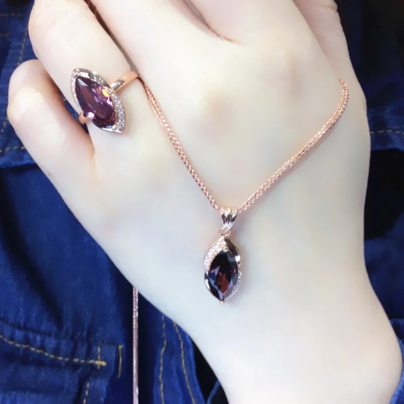 585 Purple Gold Plated 14K Rose Gold Inlaid Marquise Ruby Women's Jewelry Set New Classic Luxury Wedding earrings rings
